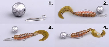 De Cheburashka-techniek is vanuit Rusland over gewaaid. Het is een simpele maar zeer effectieve methode voor bottom-jigging met ultralicht materiaal. Neem de clip uit de jig, bevestig een worm haak en plaats de clip weer terug. Nu is het systeem eigenlijk al vis-klaar! Wij adviseren een Gamakatsu Worm 325 en 330 Bottom Jigging vanwege de grote ring-eye zodat het kunstaas vrij kan bewegen.