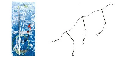 Voorzien van maarliefst 3 luminous afhouders een opvallende creatie. Uit de praktijk blijkt dit effectief te zijn bij donker weer….en dat zijn net de betere vangdagen…! Lengte 135cm, diameter hoofdlijn 0.60mm, diameter zijlijn 0.40mm.